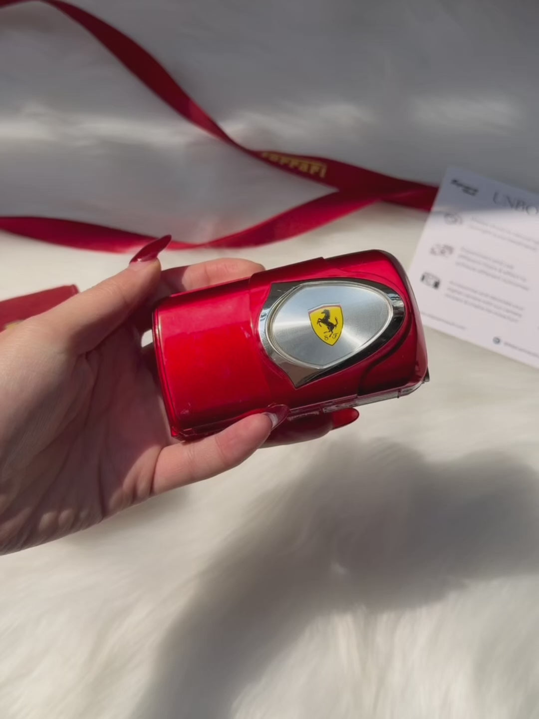 Rare Ferrari collaboration digicam with iconic red finish and collector appeal.